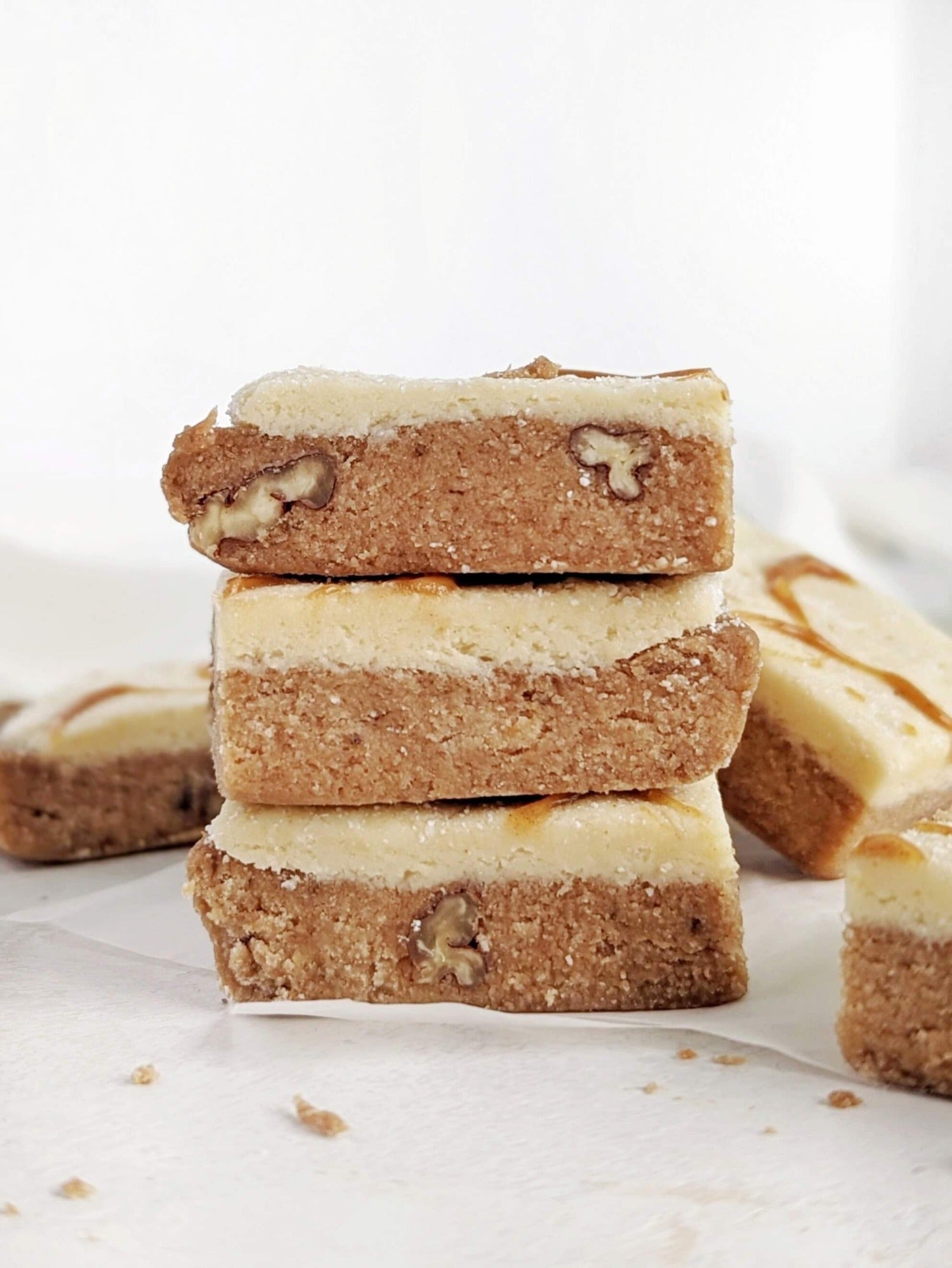 A new take on a breakfast classic. Our Banana Bread Bars are soft, satisfying, and naturally sweet, made with freeze-dried banana powder, crunchy walnuts, and topped with a creamy protein coconut butter frosting. Each bar is vegan, gluten-free, and refined sugar-free. They're perfect for mornings, midday snacks, or a nutritious dessert. Boosted with clean, plant-based ingredients and protein to keep you fueled, focused, and feeling good. We love ours drizzled with chocolate or peanut butter for an extra pop of indulgence.
