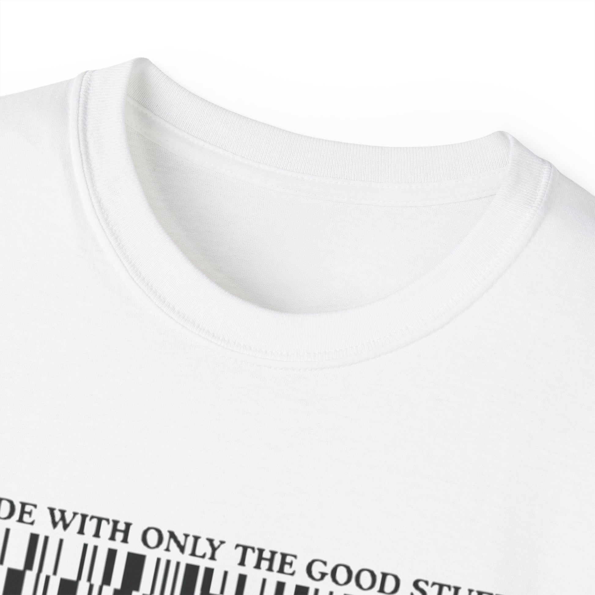 How it wears: This tee fits relaxed and slightly oversized through the body and sleeves, with a straight hem that typically sits at the hips. The dropped shoulders create a looser silhouette.