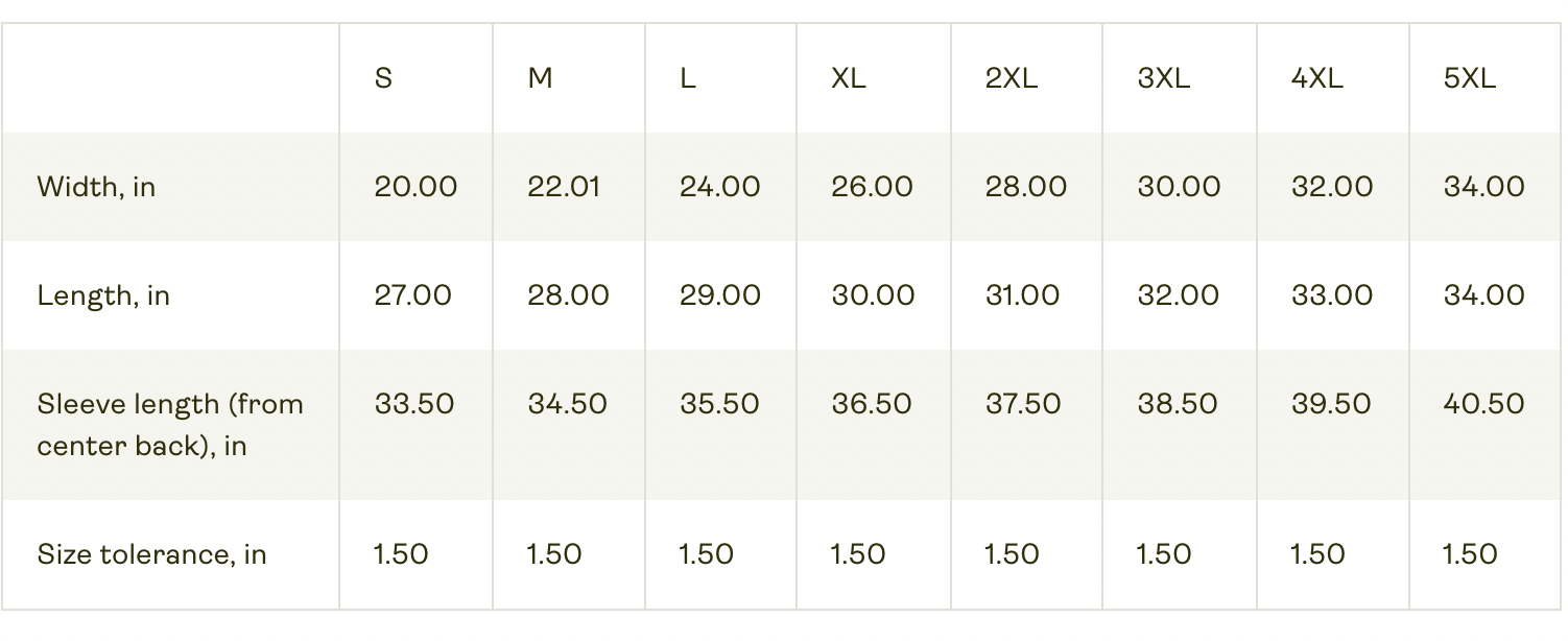 - Tubular knit (no side seams) for a clean, waste-reducing construction